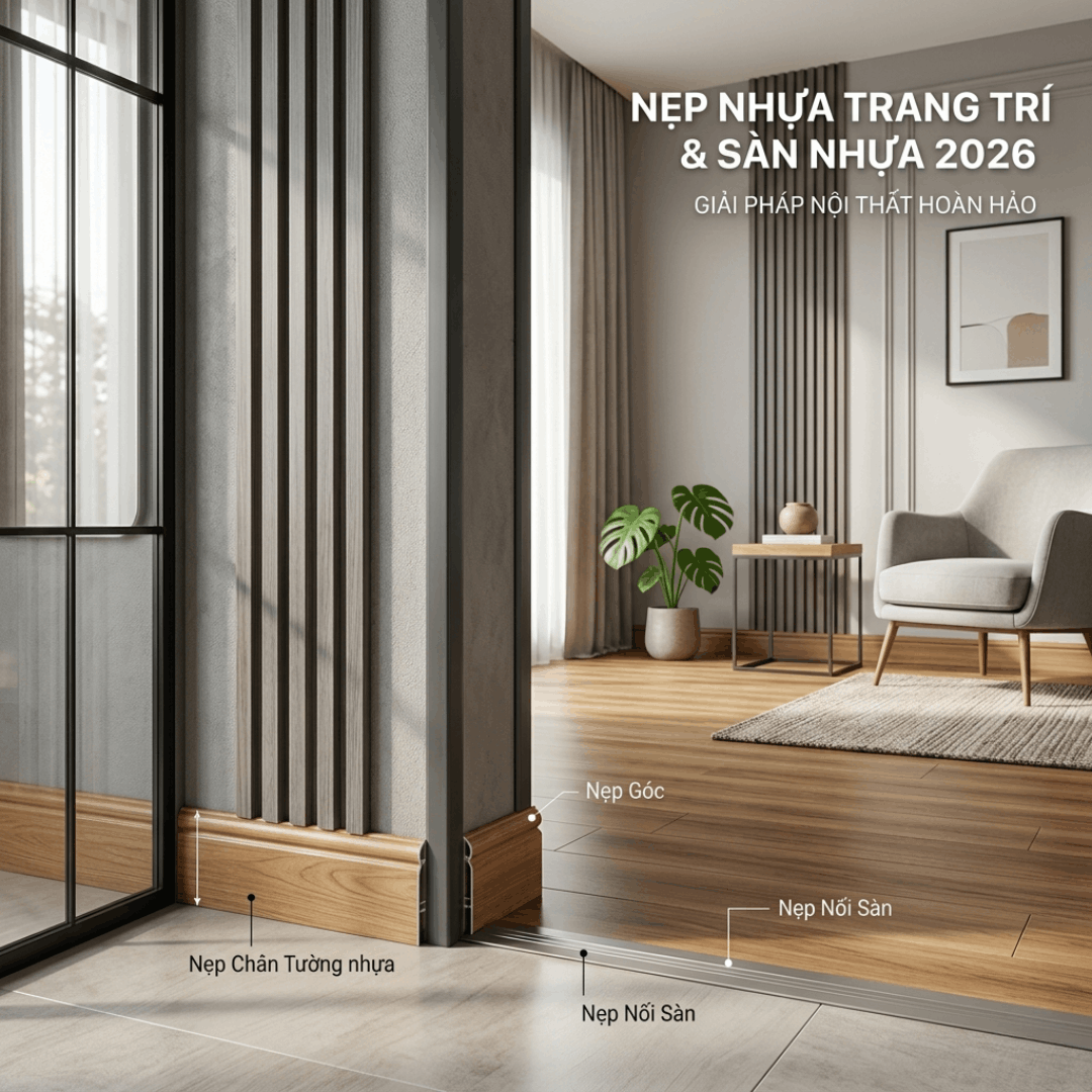 Trong thi công sàn nhựa giả gỗ và ốp tường, nẹp nhựa là phụ kiện không thể thiếu để che đi các khoảng hở kỹ thuật, bảo vệ mép vật liệu và tạo điểm nhấn thẩm mỹ tinh tế cho không gian sống. Forbo Việt Nam sẽ giới thiệu đến bạn các loại nẹp phổ biến hiện nay mới nhất 2026.