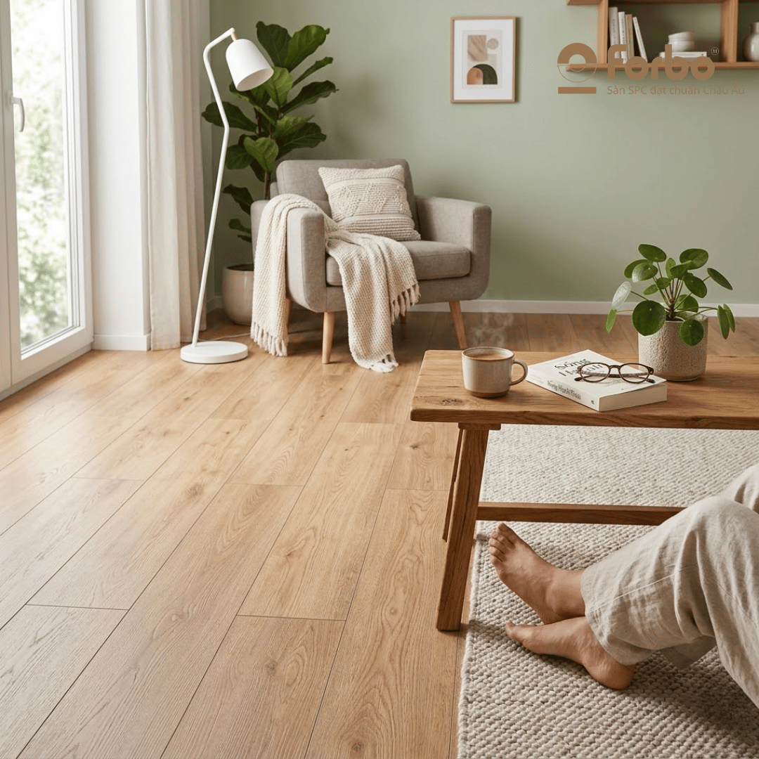 An toàn sức khỏe: Luôn ưu tiên các dòng keo đạt chứng chỉ phát thải thấp (VOC thấp). Sàn nhựa Forbo kết hợp với keo chuyên dụng đảm bảo không khí trong lành, không mùi hóa chất độc hại.