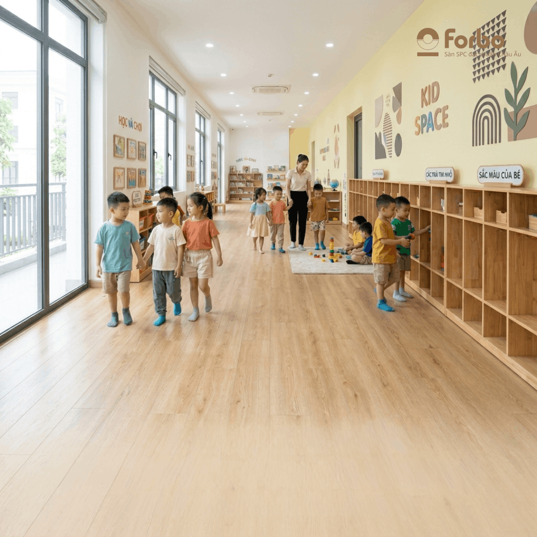 1. Tại sao sàn nhựa giả gỗ là lựa chọn tối ưu cho trường mầm non?